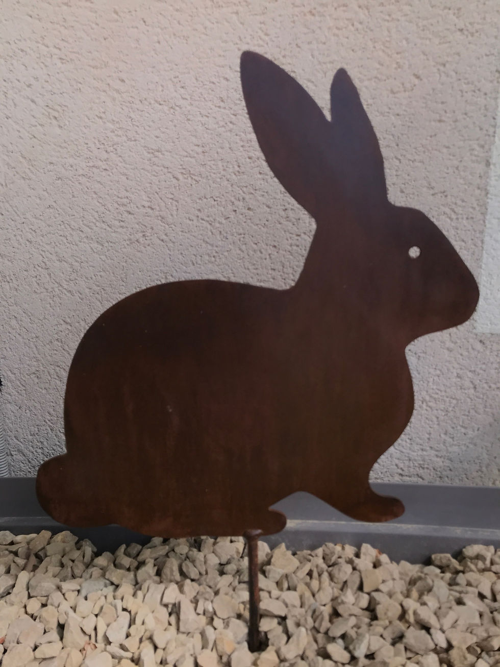 Lapin rouillé 20cm hauteur 36 cm sur tige